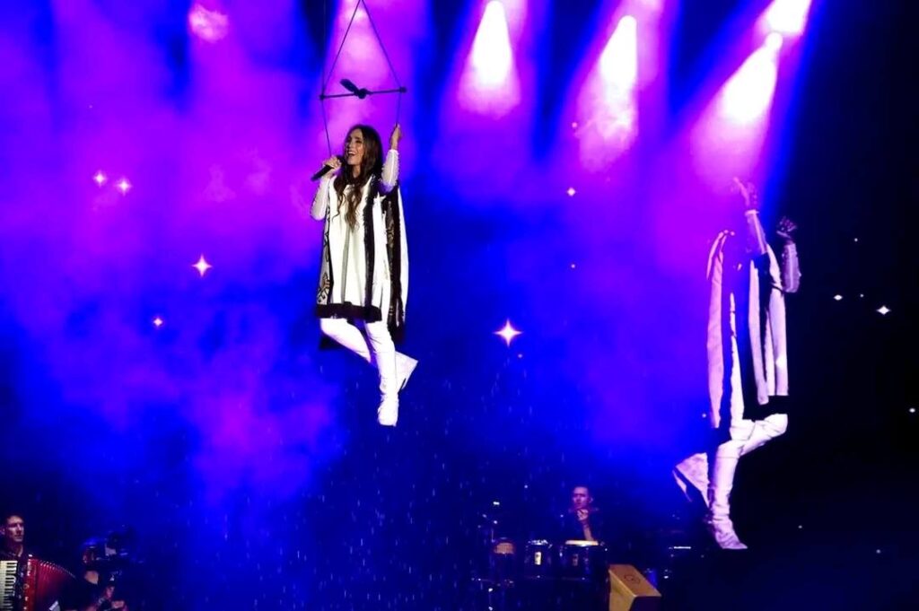 La Sole sorprendió desde el inicio con una impactante puesta en escena, apareciendo desde lo alto como una luna iluminada, marcando el tono épico de una presentación que recorrió su historia musical.