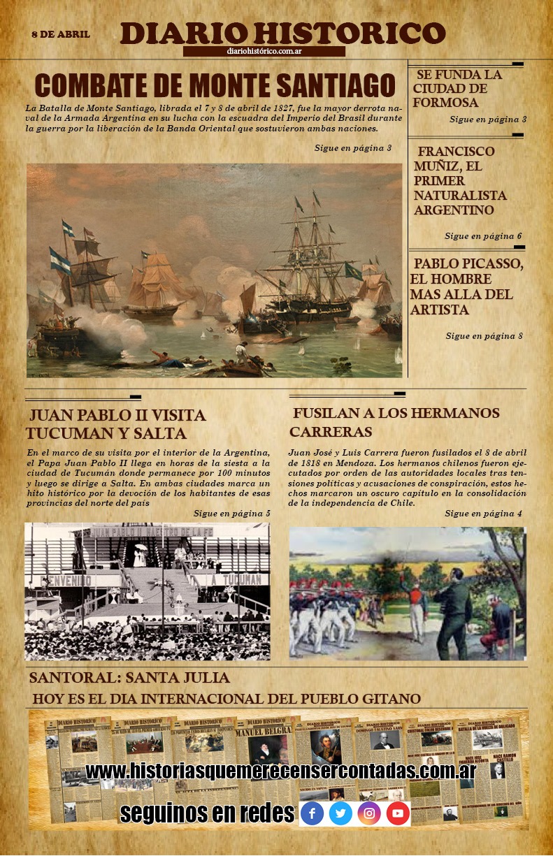 De esta manera, el 8 de abril reúne una serie de acontecimientos históricos, figuras destacadas y conmemoraciones que forman parte de la memoria colectiva tanto de la Argentina como del resto del mundo.