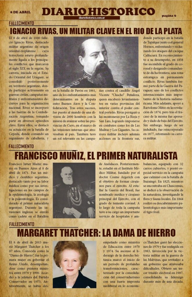 - 2013: fallece Margaret Thatcher, ex primera ministra del Reino Unido.