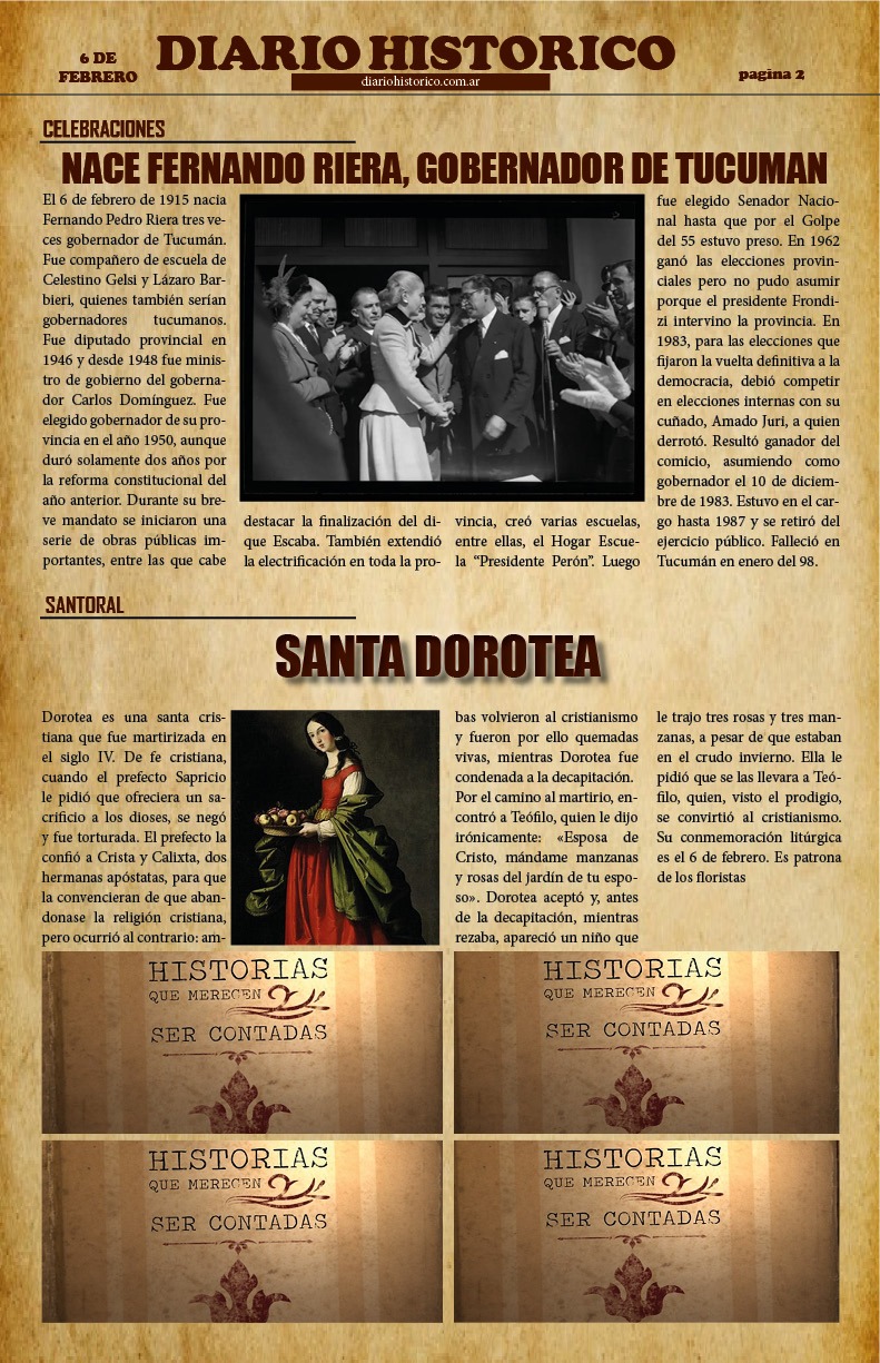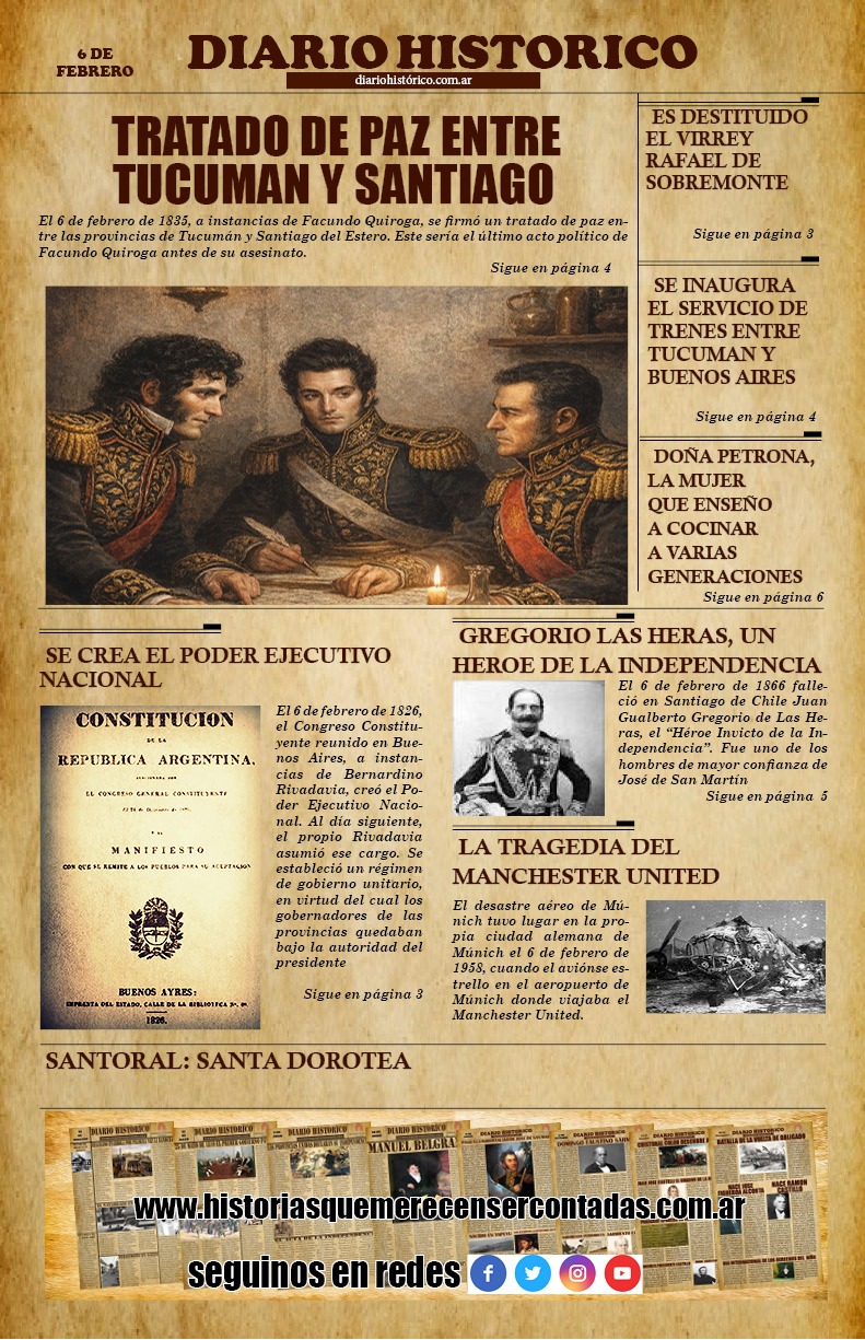 Local Efemérides Viernes 6 de febrero RadioLaRioja 6 de febrero de 2026 1 min de lectura About The Author RadioLaRioja See author's posts Navegación de entradas Anterior: Portada de Diarios de Argentina del Viernes 6 de febreroSiguiente: Quintela denunció una “posición cruel” del Gobierno nacional y ratificó un fuerte rol del Estado riojano Deja una respuesta Cancelar la respuestaLo siento, debes estar conectado para publicar un comentario. Relacionadas 1 min de lectura Local Teresita Madera tras el discurso del gobernador: “la provincia no va a abandonar a su gente” RadioLaRioja 10 de marzo de 2026 2 min de lectura Local La Legislatura inició el 141°Período de Sesiones Ordinarias RadioLaRioja 10 de marzo de 2026 1 min de lectura Local FUE HALLADA UNA DE LAS MENORES DESAPARECIDAS. RadioLaRioja 9 de marzo de 2026