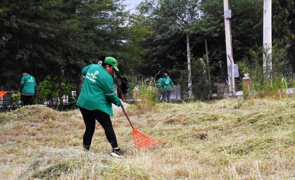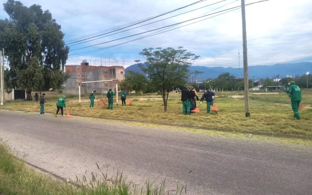 Las tareas incluyeron limpieza integral, desmalezado y acondicionamiento en centros barriales, instituciones sociales y áreas operativas, en articulación con organizaciones y gobiernos local y provincial.