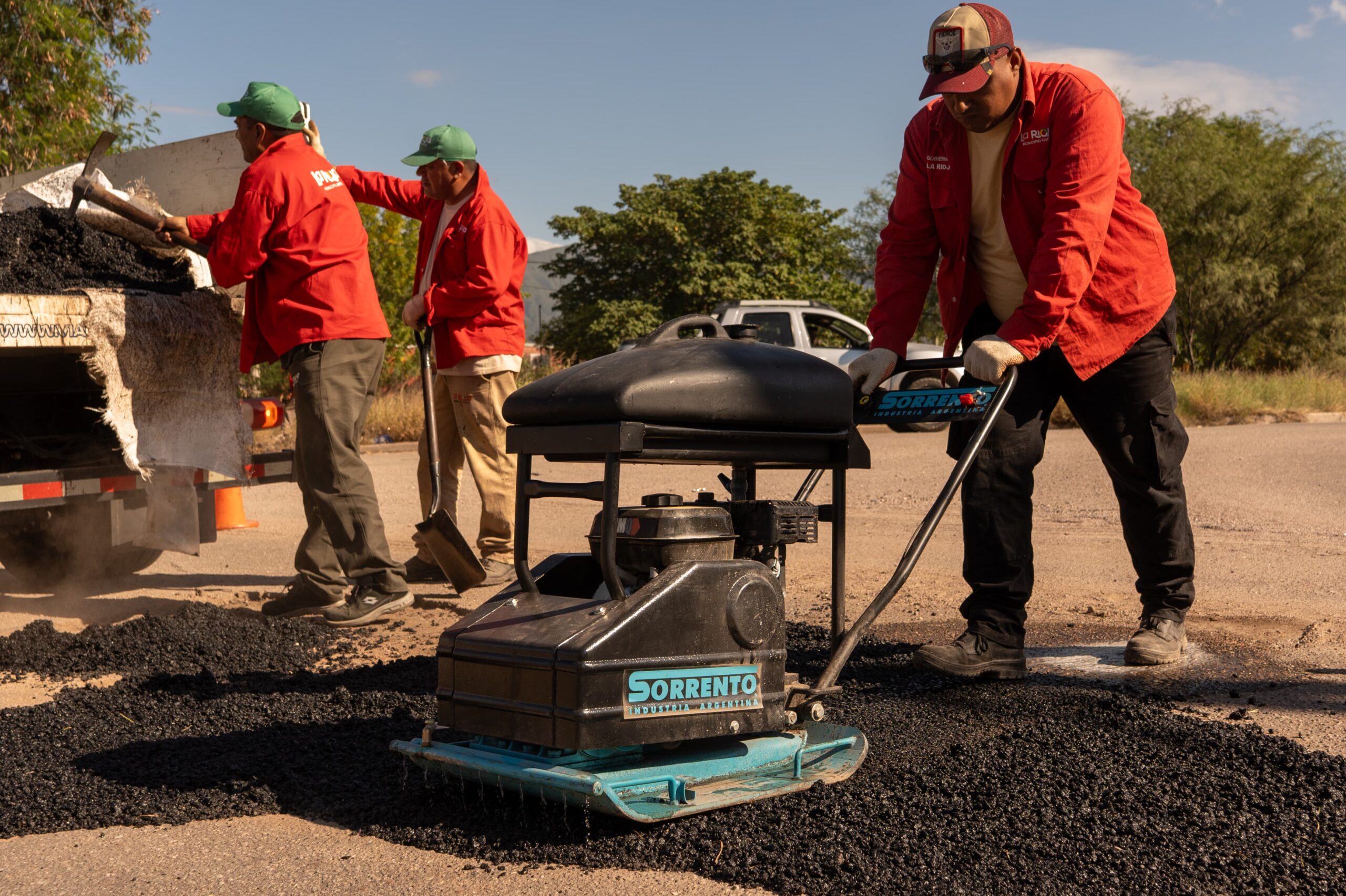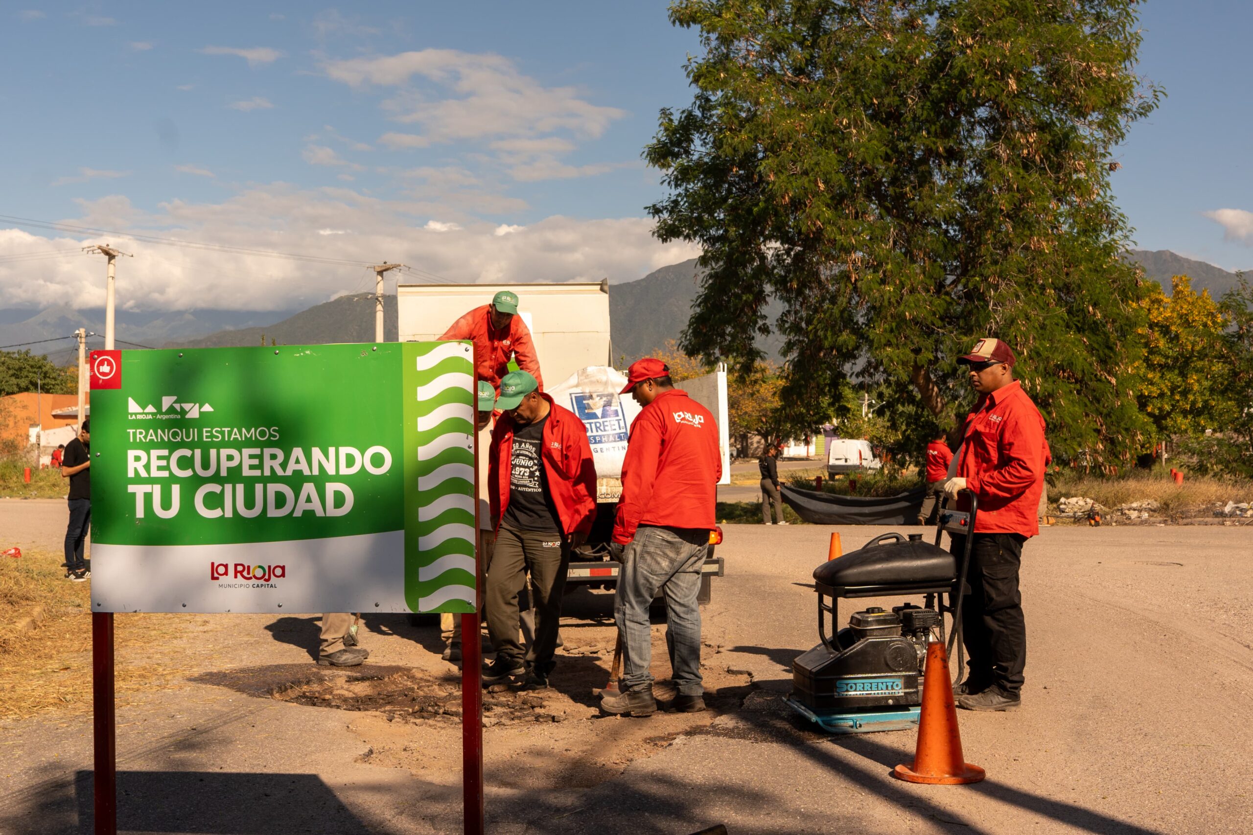 En ese marco, un equipo de Conservación Vial efectuó bacheo con asfalto en frío, interviniendo sobre la calle Donato Sbiroli, en el ingreso al barrio.