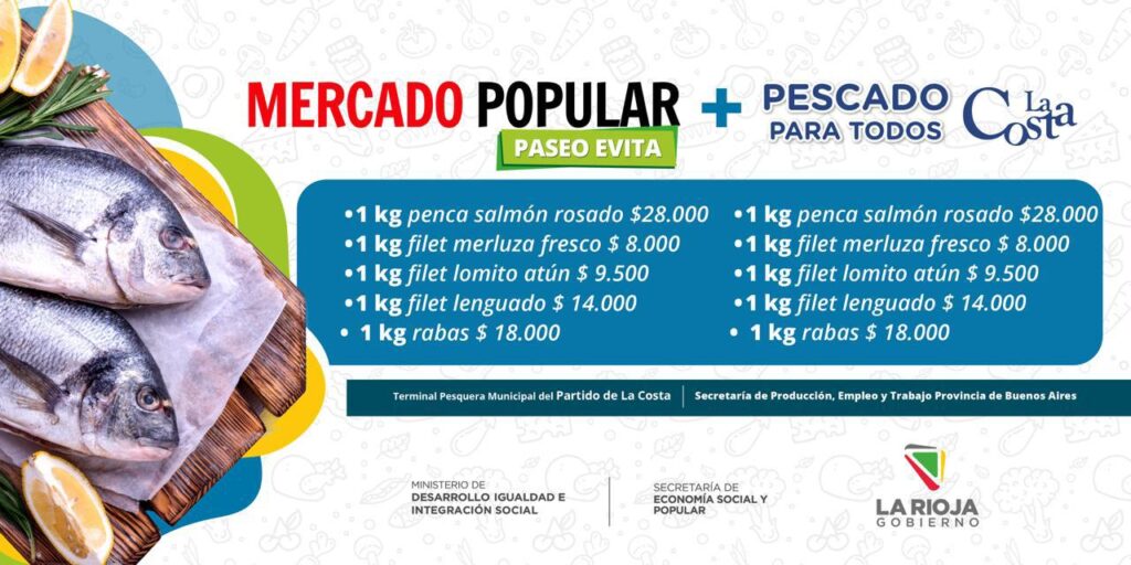 Este viernes y sábado, el Ministerio de Desarrollo, Igualdad e Integración Social implementará el programa “Pescados para Todos” en distintos puntos de la ciudad, con el objetivo de acercar productos frescos y nutritivos a precios populares y acompañar a las familias riojanas en un momento de crisis económica.