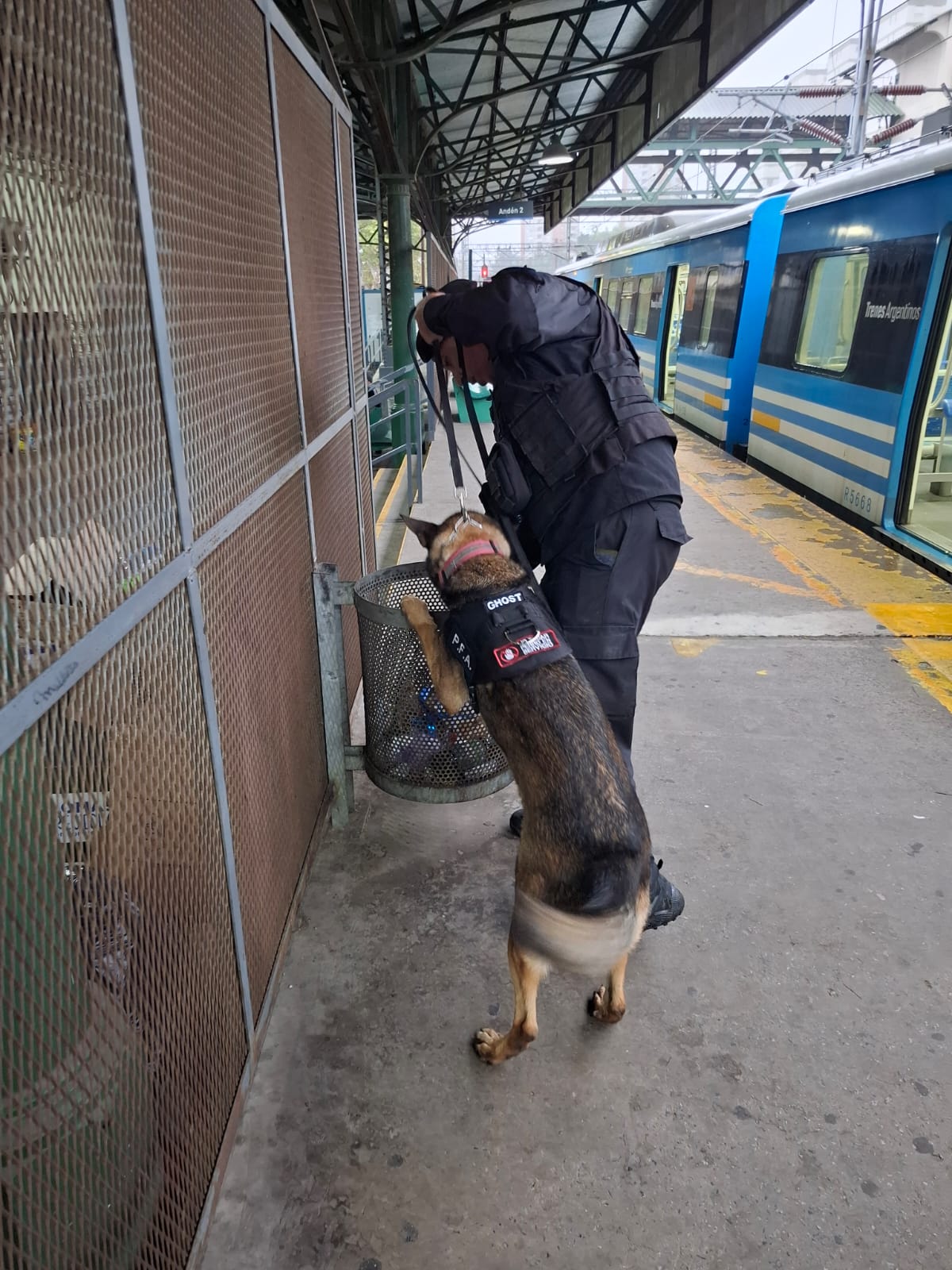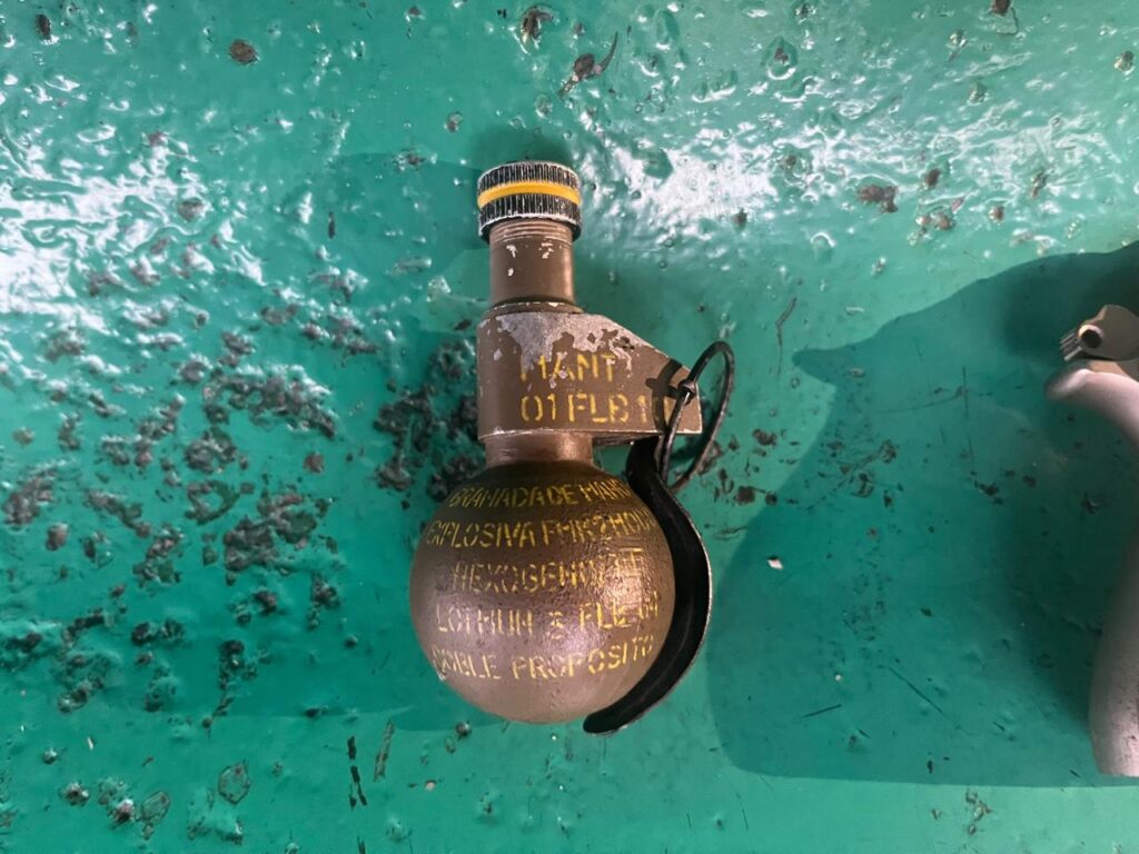 En esas circunstancias, y a solicitud de la Dirección General de Operaciones de la PFA, se hizo presente personal de la División Operaciones y Contramedidas, perteneciente a la Dirección General de Explosivos y Riesgos Especiales. Luego de que personal de la División Unidad de Prevención en Medios de Transporte estableciera un anillo de seguridad más amplio alrededor de la estación ferroviaria, los especialistas inspeccionaron el artefacto explosivo, constatando que se trataba de una granada de mano explosiva Fmk-2 Mod. 0.