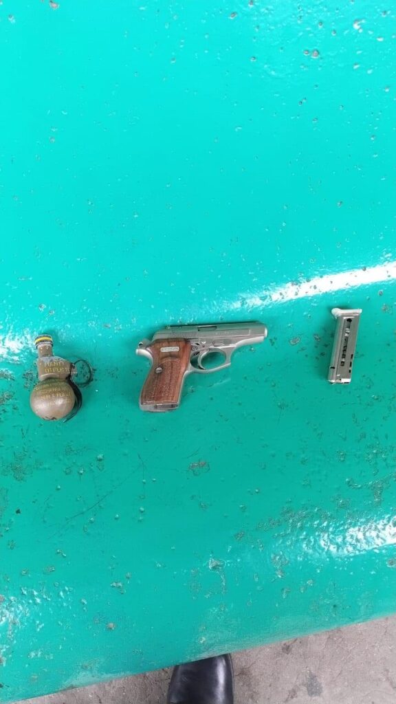 En ese sentido, minutos más tarde el agresor depuso completamente su actitud y entregó la granada y la pistola al personal interventor, quienes de manera inmediata lo redujeron y concretaron su aprehensión.