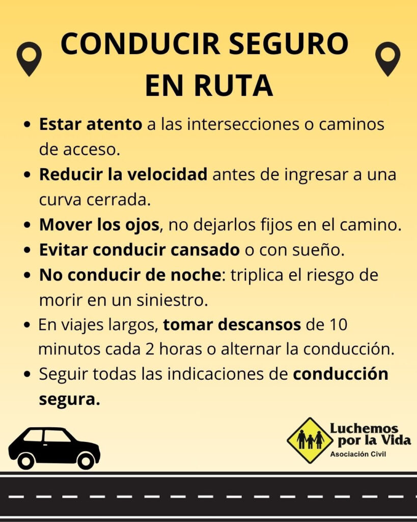 Es época de vacaciones. Al viajar en auto, en general, hay que conducir largos tramos por zonas rurales, en rutas, autopistas o autovías y en caminos de tierra. Las conductas más riesgosas en estas zonas son la conducción a exceso de velocidad y los adelantamientos indebidos. Son cotidianos graves siniestros, que se reiteran en todo el país, y vuelven a poner en relieve la necesidad de extremar precauciones al volante, especialmente en rutas.