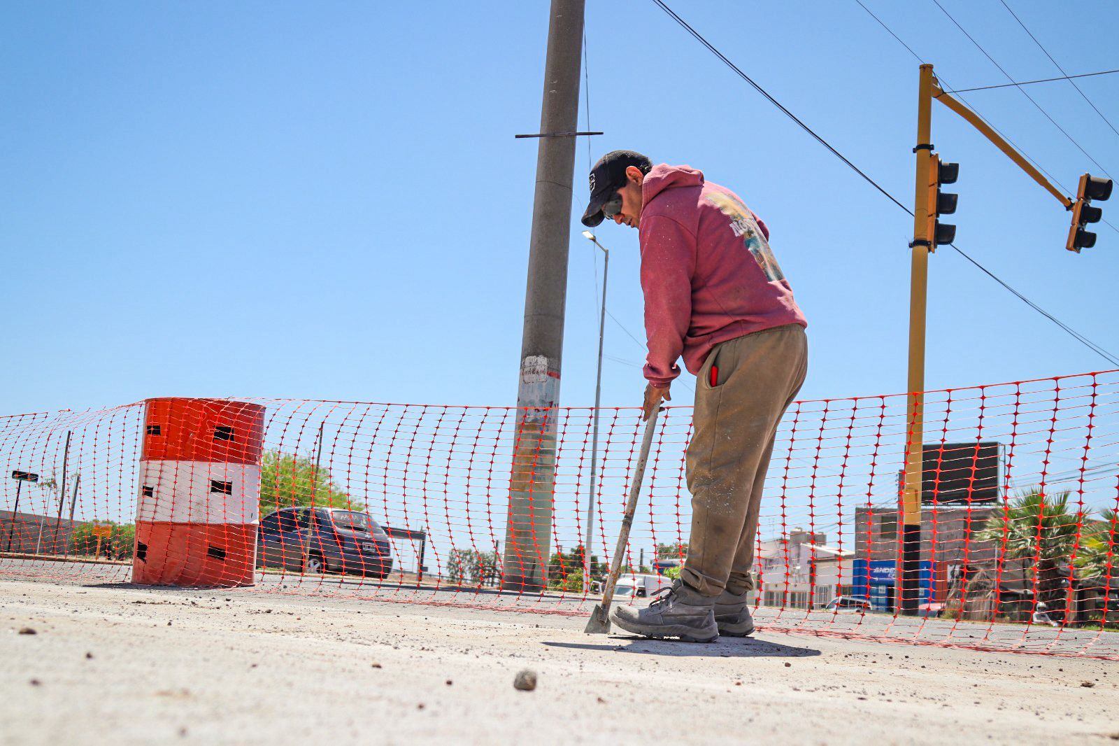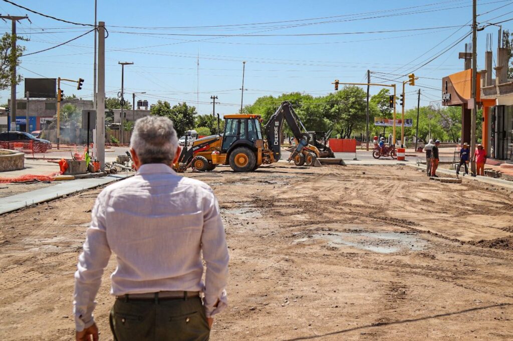 El intendente Armando Molina supervisó los trabajos que llevan adelante los equipos de Vialidad de la Provincia, en la Calle David Gatica, principal acceso a la Terminal de Ómnibus de la ciudad.