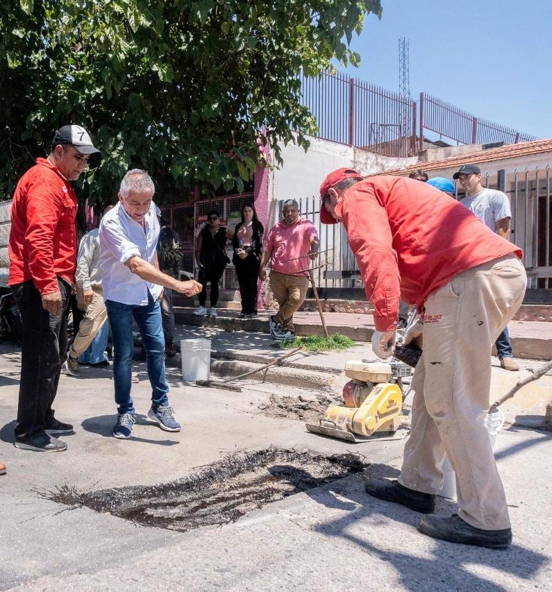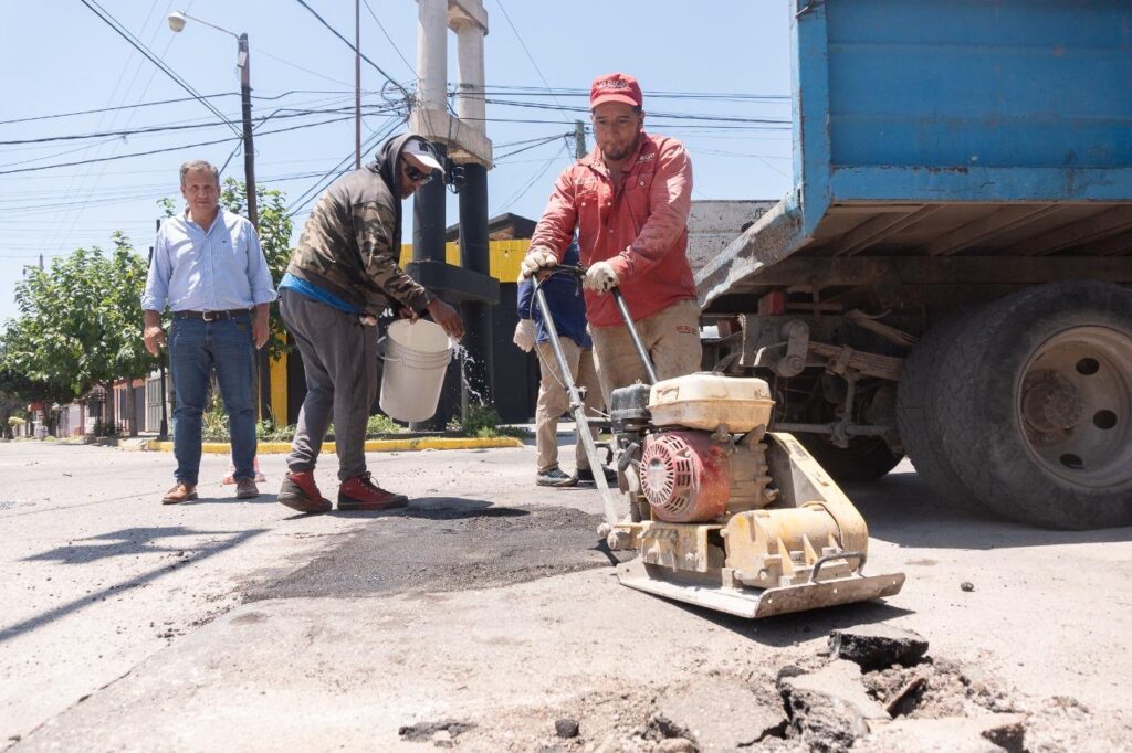 En esta ocasión, los trabajos se centraron sobre la avenida Ramírez de la Velasco, en la zona Norte, donde se está realizando un bacheo con material en frío.