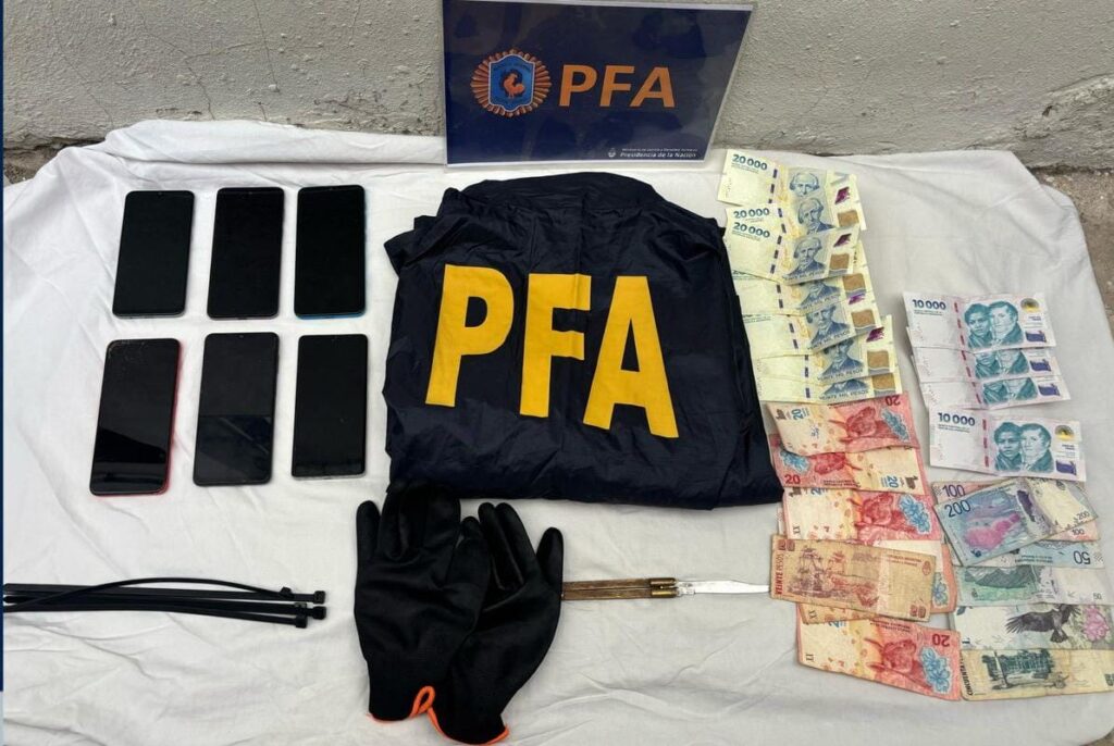Asimismo, se incautaron 1 automóvil de alta gama vinculado a la investigación, 1 motovehículo, 186.000 pesos argentinos, 1 campera con la inscripción de la Policía Federal Argentina , gran cantidad de precintos, 8 teléfonos celulares y documentación de interés para la causa.