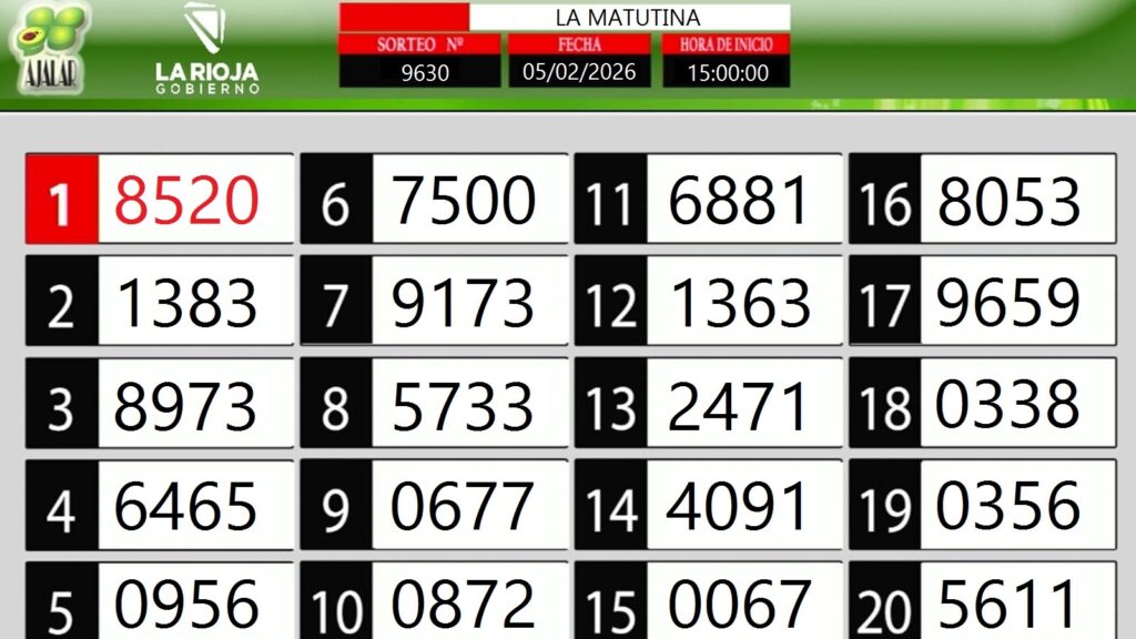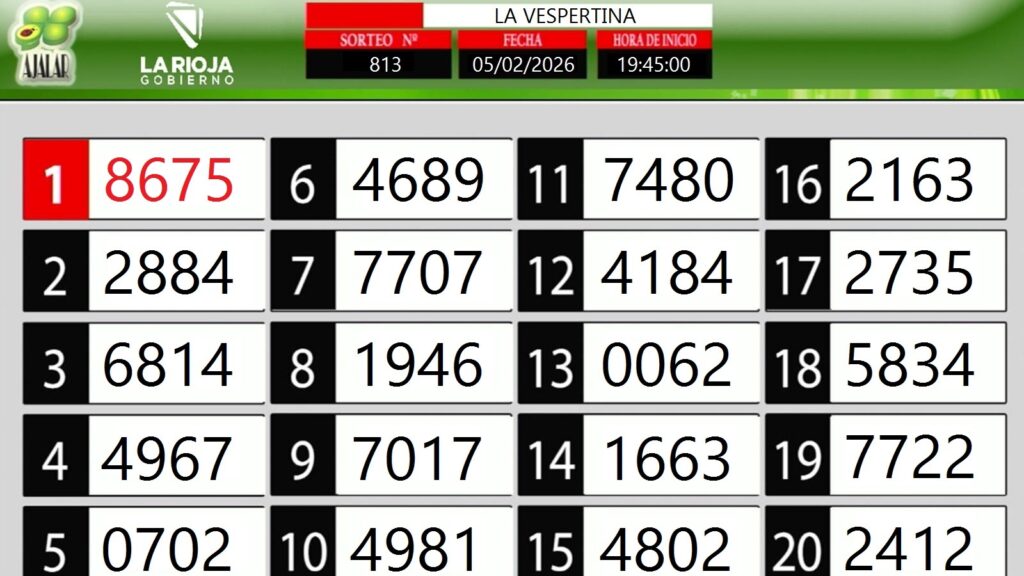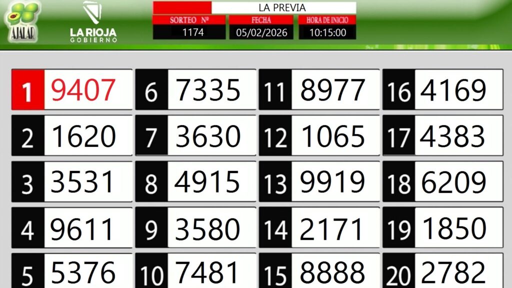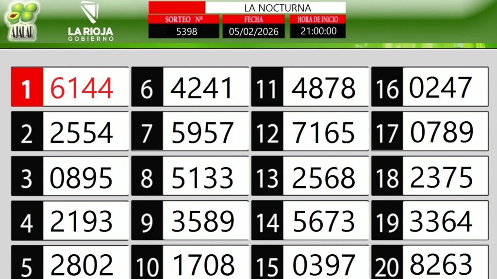 Local Sorteos AJALAR Jueves 5 de febrero RadioLaRioja 6 de febrero de 2026 1 min de lectura About The Author RadioLaRioja See author's posts Navegación de entradas Anterior: Bomberos Voluntarios controlaron un incendio de pastizales detrás de la UNLaRSiguiente: Denuncian graves irregularidades judiciales tras un siniestro vial fatal ocurrido en diciembre Deja una respuesta Cancelar la respuestaLo siento, debes estar conectado para publicar un comentario. Relacionadas 1 min de lectura Local Teresita Madera tras el discurso del gobernador: “la provincia no va a abandonar a su gente” RadioLaRioja 10 de marzo de 2026 2 min de lectura Local La Legislatura inició el 141°Período de Sesiones Ordinarias RadioLaRioja 10 de marzo de 2026 1 min de lectura Local FUE HALLADA UNA DE LAS MENORES DESAPARECIDAS. RadioLaRioja 9 de marzo de 2026